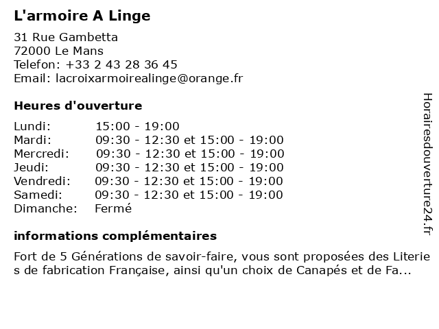 | Mardi | 09:30-12:30 et 15:00-19:00 |