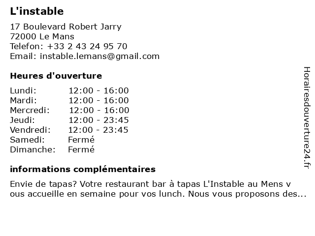 Envie de tapas? Votre restaurant bar à tapas L'Instable au Mens vous accueille en semaine pour vos lunch. Nous vous proposons des afterwork chaque jeudi et vendredi. Contactez-nous pour plus d'inf...