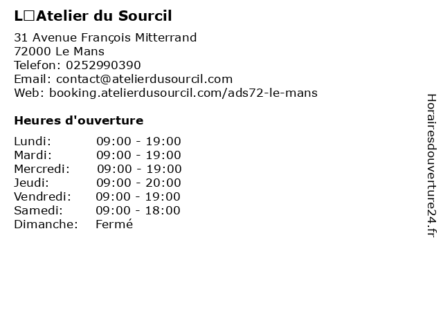 1 L’Atelier du Chocolat (Distance: 0,27 km) 18 Rue Marchande, 72000 Le Mans atelier, chocolat, chocolates bouquets, chocolates boxes, du, l’atelier, medals, pastries, sweet 2 Ambae Cosmétiques (Distance: 0,26 km) 3 Rue de la Juiverie, 72000 Le Mans ambae, beauté, boutique, cosmétique, cosmétiques, institut, manucure, massage, soins, épilation 3 BAB - Bar à Beauté (Distance: 0,35 km) 13 Rue Claude Blondeau, 72000 Le Mans bab, bar, beauté, esthétique, kiosque, soins, épilation 4 Sherazade institut (Distance: 0,93 km) 27 Rue Montoise, 72100 Le Mans corps, institut, mains, sherazade, soins, visage, épilation 5 Sensea (Distance: 1,28 km) 10 Bis Rue René Bechepay, 72100 Le Mans manucure, maquillage, massage, reiki, salon de beauté, sensea, épilation 6 Reflet Institut (Distance: 2,17 km) 14 Rue Marcel Proust, 72100 Le Mans corps, institut, mains, maquillage, reflet, salon de beauté, soins, uva, visage, épilation |