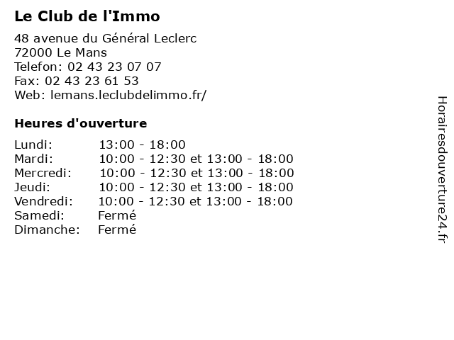 | Vendredi | 10:00-12:30 et 13:00-18:00 |