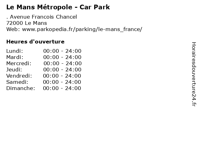 1 Le Mans Métropole - Car Park (Distance: 0,59 km) . Rue Quai Louis Blanc, 72100 Le Mans car, le, mans, métropole, park, parking, services 2 Le Mans Métropole - Car Park (Distance: 0,61 km) . Place du Cardinal Grente, 72100 Le Mans car, le, mans, métropole, park, parking, services 3 Le Mans Métropole - Car Park (Distance: 0,62 km) . Place du Pré, 72000 Le Mans car, le, mans, métropole, park, parking, services 4 Le Mans Métropole - Car Park (Distance: 0,98 km) . Rue du Cirque, 72000 Le Mans car, le, mans, métropole, park, parking, services 5 Le Mans Métropole - Car Park (Distance: 1,64 km) . Place Langevin, 72000 Le Mans car, le, mans, métropole, park, parking, services 6 Ville de Le Mans - Car Park (Distance: 0,27 km) . Rue Claircigny, 72100 Le Mans car, de, le, mans, park, parking, services, ville |