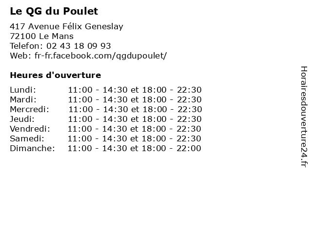 | Dimanche | 11:00-14:30 et 18:00-22:00 |