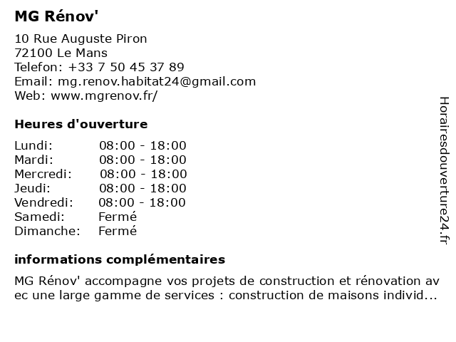 1 Allo Assist Dépannage Rénov (Distance: 1,70 km) 13 Rue Abel Charleau, 72100 Le Mans allo, assist, dépannage, rénov 2 3 Espace Conseil France Rénov (Distance: 3,98 km) 10 Rue Barbier, 72000 Le Mans accueil, conseil, espace, france, maison, rénov 5 Rénov'Habitat (Distance: 6,16 km) 6 rue Hector Berlioz, 72000 Le Mans entreprise, intérieur, menuiserie, rénov'habitat, rénovation, toitures 6 Sarthe Rénov Piscine (Distance: 7,53 km) 9 rue du Pré de la Douve, 72700 Pruille le Chétif construction, entretien, installation, piscine, pisciniste, rénov, sarthe |