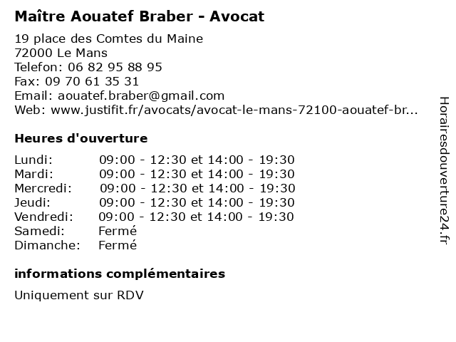 | Lundi | 09:00-12:30 et 14:00-19:30 |