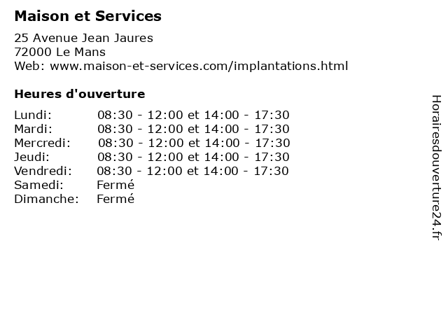 | Lundi | 08:30-12:00 et 14:00-17:30 |