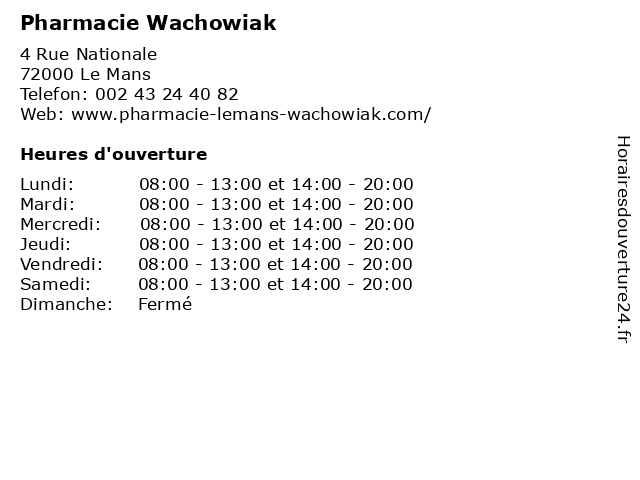 | Lundi | 08:00-13:00 et 14:00-20:00 |
