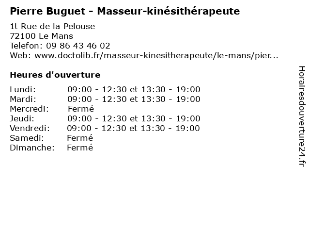 | Jeudi | 09:00-12:30 et 13:30-19:00 |