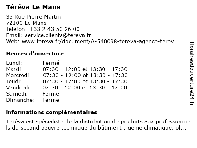 | Mardi | 07:30-12:00 et 13:30-17:30 |
