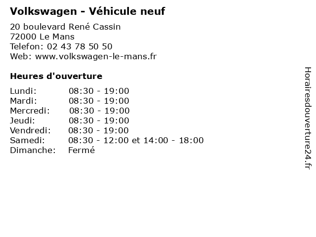 | Samedi | 08:30-12:00 et 14:00-18:00 |