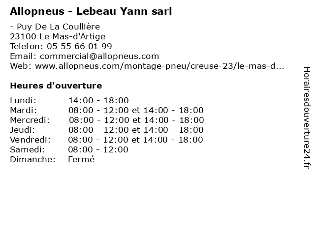 | Mardi | 08:00-12:00 et 14:00-18:00 |