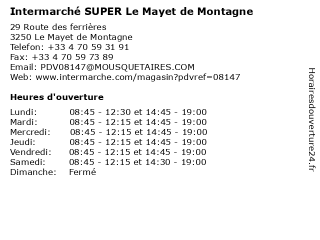 Termes de recherche pour Intermarché SUPER Le Mayet de Montagne:le, de, intermarché, super, montagne, mayet |