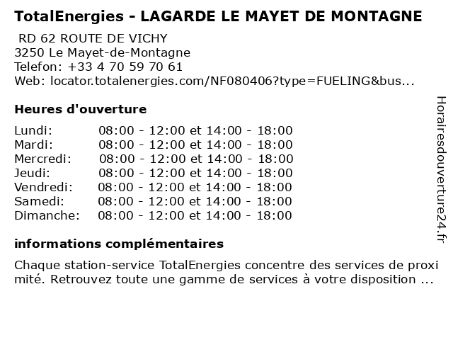 Termes de recherche pour TotalEnergies - LAGARDE LE MAYET DE MONTAGNE:le, de, total, montagne, lagarde, mayet, gas station, station service, tankstelle, totalenergies |