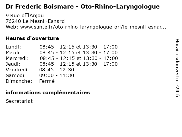 | Lundi | 08:45-12:15 et 13:30-17:00 |
