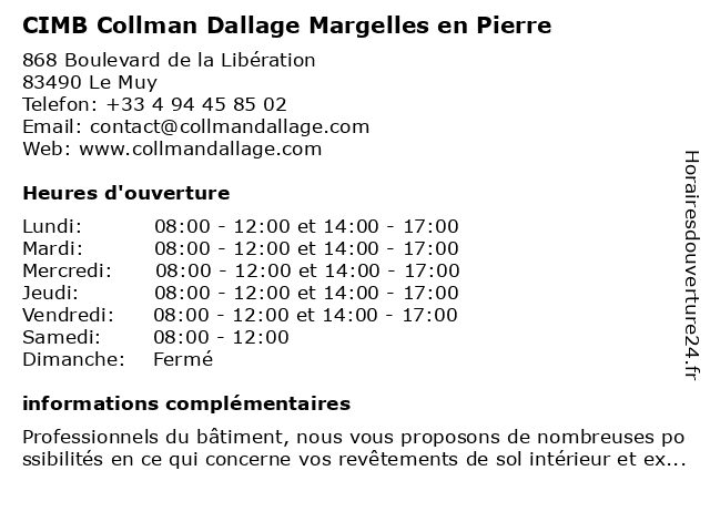 | Lundi | 08:00-12:00 et 14:00-17:00 |