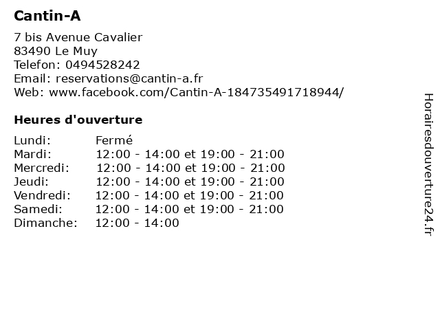 | Mardi | 12:00-14:00 et 19:00-21:00 |