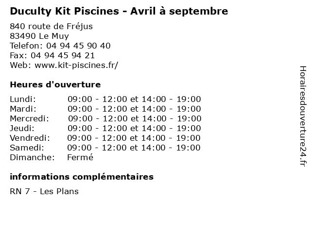 | Samedi | 09:00-12:00 et 14:00-19:00 |