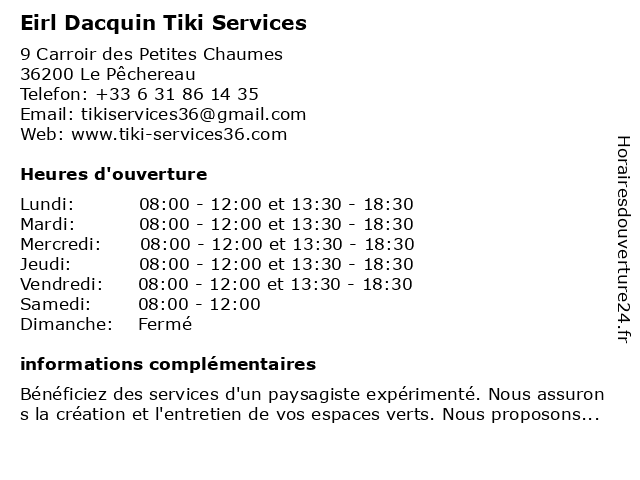 Termes de recherche pour Eirl Dacquin Tiki Services:services, tiki, eirl, dacquin |