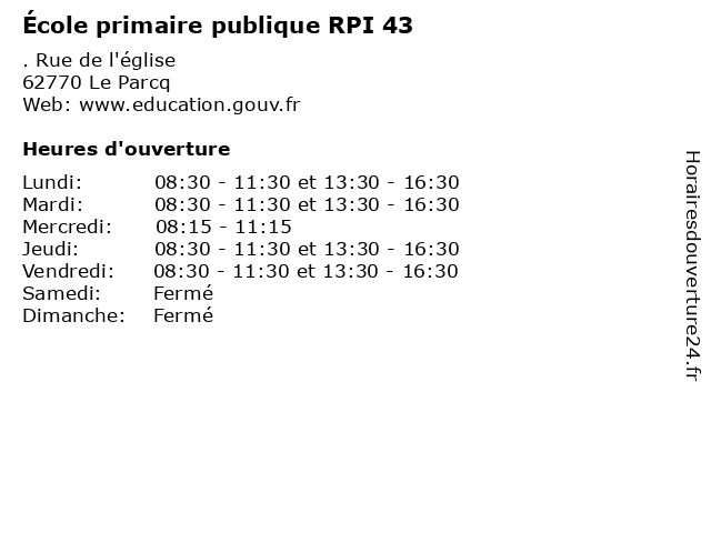 | Mardi | 08:30-11:30 et 13:30-16:30 |