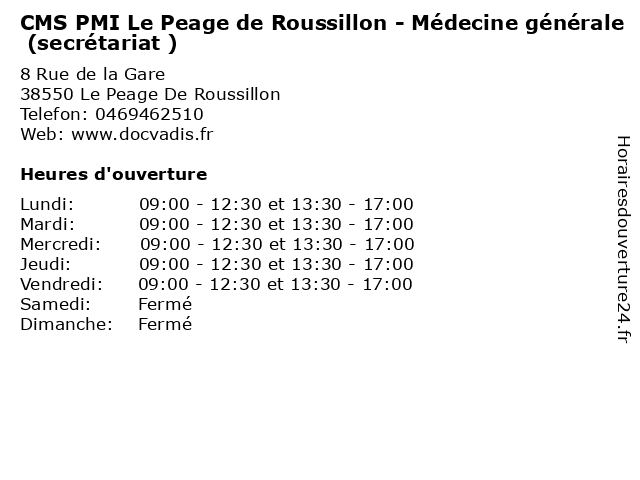 Termes de recherche pour CMS PMI Le Peage de Roussillon - Médecine générale (secrétariat ):le, de, peage, générale, medecine, santé, roussillon, secretariat, docteur, pmi, consultation, cms |