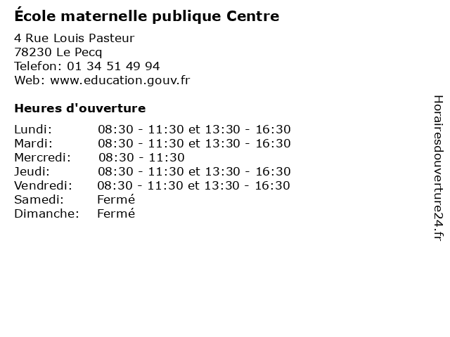 | Mardi | 08:30-11:30 et 13:30-16:30 |
