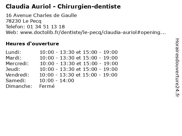 | Lundi | 10:00-13:30 et 15:00-19:00 |