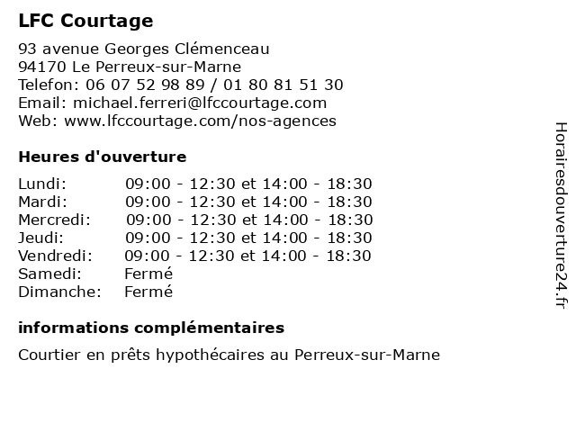 | Lundi | 09:00-12:30 et 14:00-18:30 |