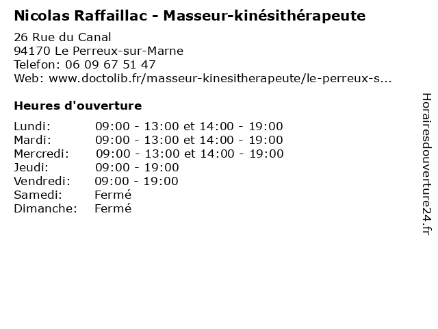 | Lundi | 09:00-13:00 et 14:00-19:00 |