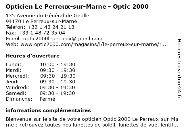 1 Atol Mon Opticien (Distance: 0,02 km) 128 Avenue du Général de Gaulle, 94170 Le Perreux-sur-Marne atol, atol les opticiens, atol mon opticien, lentilles, lunettes de soleil, lunettes de vue, mon, opticien, opticien le perreux-sur-marne 4 ACUITIS Opticien & Audioprothésiste Nogent-Sur-Marne (Distance: 1,59 km) 89/91 Grande Rue Charles de Gaulle, 94130 Nogent-sur-Marne acuitis, audiologiste, audioprothesiste, audioprothésiste, magasin d'appareils auditifs, magasin de lentilles de contact, magasin de lunettes de soleil, marne, nogent, opticien, optometrie, sur 5 Opticien NEUILLY SUR MARNE Générale d'Optique (Distance: 1,63 km) Boulevard du Maréchal Foch, 93330 Neuilly-sur-Marne d'optique, examen de la vue, générale, lentilles de contact, lentilles progressives, lunette ray ban, lunettes, lunettes anti-lumière bleue, lunettes de conduite de nuit, lunettes de conduites de nuit, lunettes de soleil, lunettes de soleil pour enfant, lunettes de soleil pour femme, lunettes de soleil pour homme, lunettes de vue, lunettes de vue femme, lunettes de vue homme, lunettes progressives, marne, neuilly, opticien, opticien proche de chez moi, optique, sport à la vue, sur, vérification de la vue 6 Opticien Générale d'Optique VAL FONTENAY (Distance: 1,83 km) 12 Rue de la Mare À Guillaume, 94120 Fontenay-sous-Bois d'optique, fontenay, générale, opticien, val |