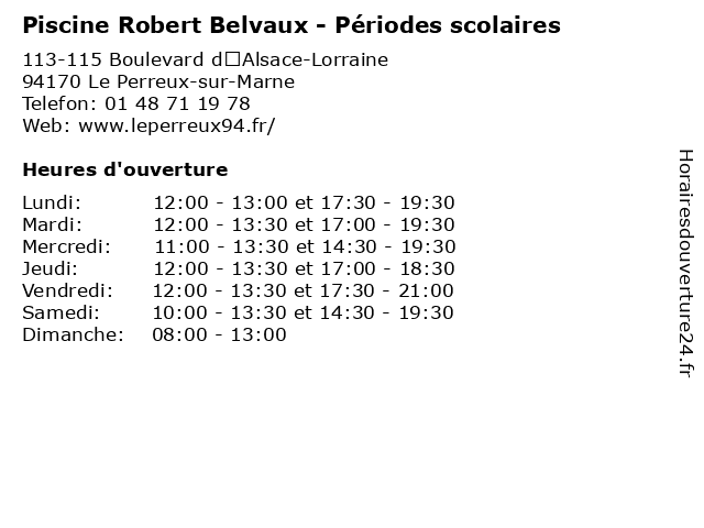 | Samedi | 10:00-13:30 et 14:30-19:30 |