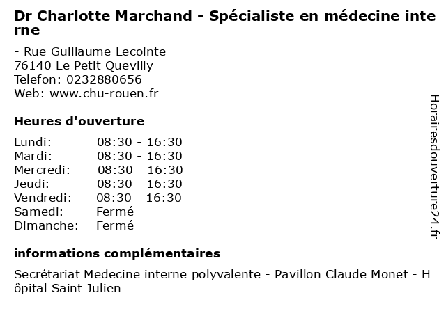 Termes de recherche pour Dr Charlotte Marchand - Spécialiste en médecine interne:en, le, fleury, quevilly, petit, rouen, centre, générale, medecine, maladie, charlotte, spécialiste, marchand, batiment, hospitalier, interne, médecin, dr, interniste |