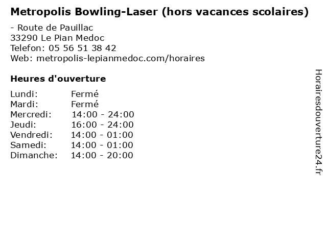 | Samedi | 14:00-01:00 |