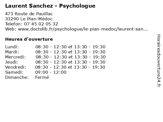 | Mardi | 08:30-12:30 et 13:30-19:30 |