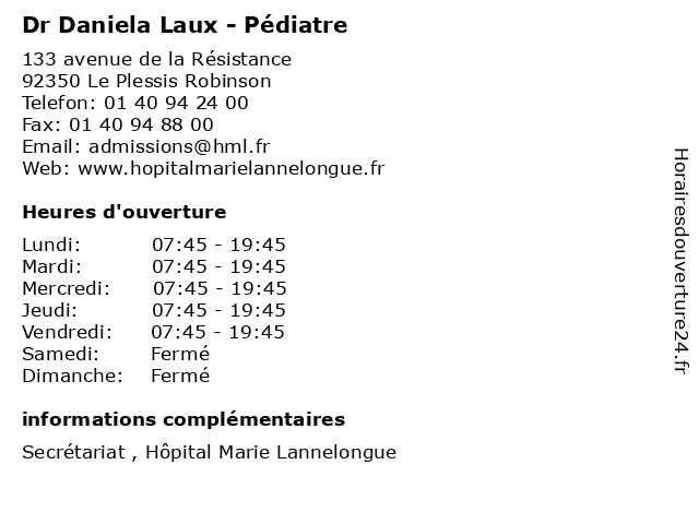 1 Dr Daniela Laux - Pédiatre (Distance: 7,51 km) 31 Avenue de Lowendal, 75015 Paris daniela, dr, enfant, laux, pediatre, pédiatre, sante, soins 2 Dr Daniela-Iolanda Ion - Anesthésiste (Distance: 0,00 km) 133 avenue de la Résistance, 92350 Le Plessis Robinson anesthésiste, consultation, daniela, docteur, dr, iolanda, ion, med, médecin, médecine, traitement 3 Maître Daniela Mincu - Avocate (Distance: 1,05 km) 10 Rue d'Estienne d'Orves, 92260 Fontenay-aux-Roses avocate, avocats, civils, daniela, droits, juridiques, maître, mincu 4 Dr Daniela Marques Da Silva - Chirurgien-dentiste (Distance: 4,34 km) 3 Allée Sainte-Lucie, 92130 Issy-les-Moulineaux chirurgie, chirurgien, da, daniela, dentaire, dentiste, dr, marques, silva 5 Daniela Silva - Psychologue (Distance: 7,63 km) 49 Avenue La Motte Picquet, 75015 Paris cabinets, daniela, médecins, psychologue, secrétariat, silva, thérapies 6 Aleksandrova Daniela (Distance: 9,35 km) 181 Rue Gabriel Peri, 94400 Vitry Sur Seine aleksandrova, daniela, restaurants |