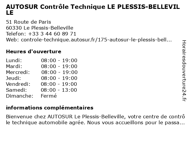 Termes de recherche pour AUTOSUR Contrôle Technique LE PLESSIS-BELLEVILLE:le, belleville, autosur, controle, technique, plessis |