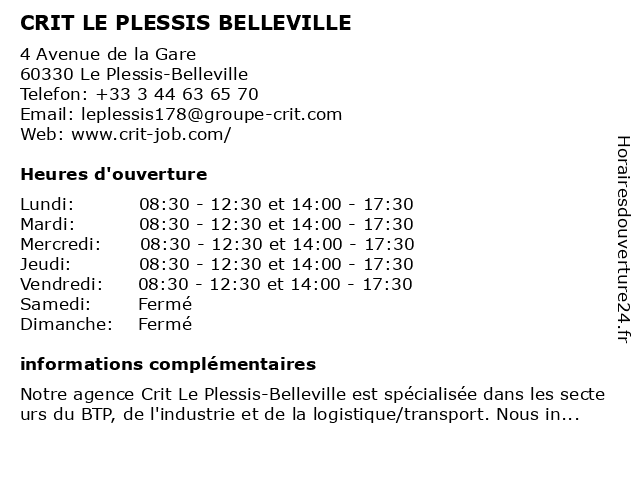 Termes de recherche pour CRIT LE PLESSIS BELLEVILLE:le, belleville, plessis, crit |