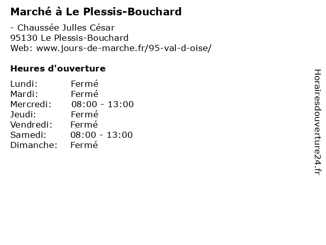 | Mercredi | 08:00-13:00 |