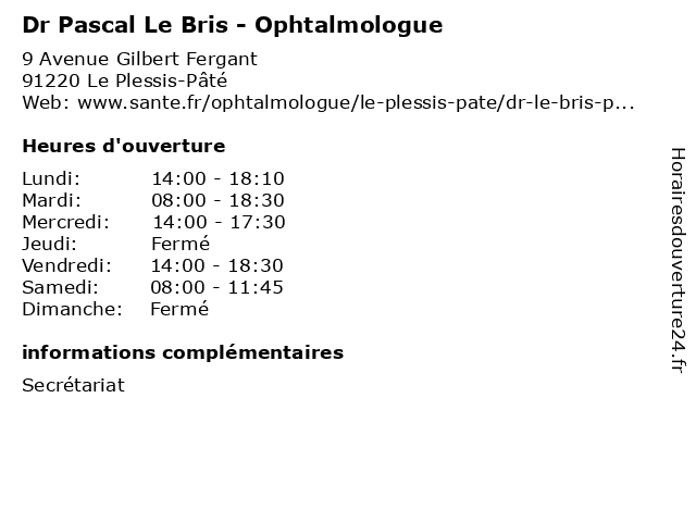 Termes de recherche pour Dr Pascal Le Bris - Ophtalmologue:le, pascal, vision, bris, dr, ophtalmologue, ophtalmologie, ophtalmologistes |