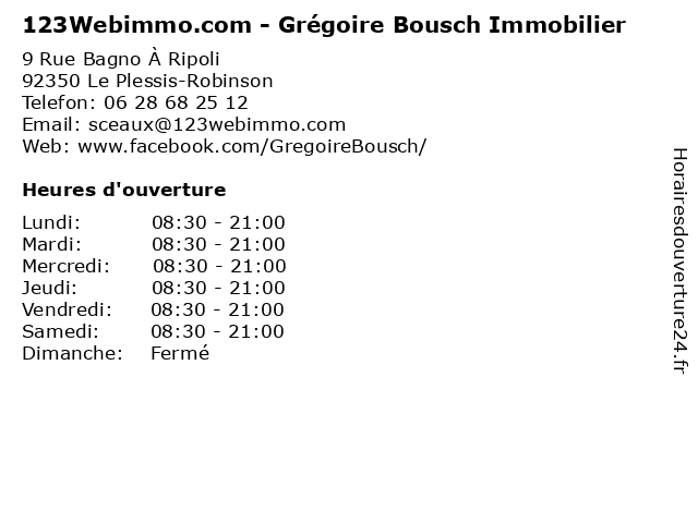 | Lundi | 08:30-21:00 |