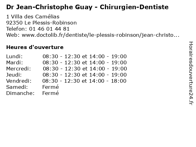 | Lundi | 08:30-12:30 et 14:00-19:00 |