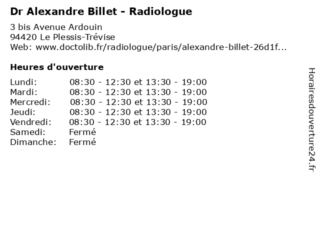 | Mercredi | 08:30-12:30 et 13:30-19:00 |
