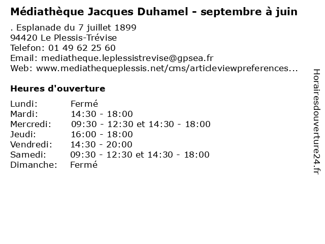 | Mercredi | 09:30-12:30 et 14:30-18:00 |