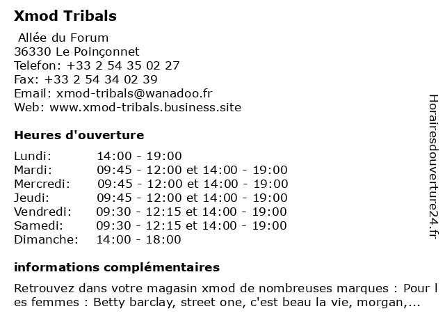 | Samedi | 09:30-12:15 et 14:00-19:00 |