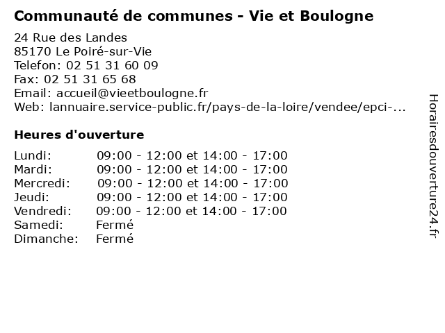 Termes de recherche pour Communauté de communes - Vie et Boulogne:et, de, boulogne, vie, administration, communes, communauté, services publics |