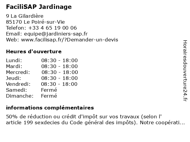 | Lundi | 08:30-18:00 |