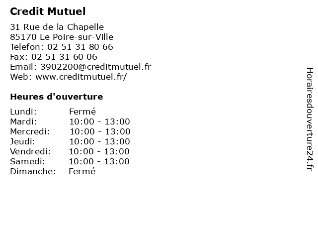1 Credit Mutuel (Distance: 6,12 km) 1 Rue Georges Clémenceau, 85170 Belleville-sur-Vie agence, assurance, bancaire, banque, credit, mutuel 2 Credit Mutuel (Distance: 6,53 km) 17 Rue La Marelle, 85000 Mouilleron-le-Captif agence, assurance, bancaire, banque, credit, mutuel 3 Credit Mutuel (Distance: 8,29 km) - Place du Sénéchal, 85170 Les Lucs-sur-Boulogne agence, assurance, bancaire, banque, credit, mutuel 4 Credit Mutuel (Distance: 8,30 km) 4 Place de l'Eglise, 85190 Aizenay agence, assurance, bancaire, banque, credit, mutuel 5 Credit Mutuel (Distance: 9,17 km) 1 Rue du Maréchal de Lattre de Tassigny, 85190 Venansault agence, assurance, bancaire, banque, credit, mutuel 6 Credit Mutuel (Distance: 9,44 km) 6 Place de la Fontaine, 85670 Palluau agence, assurance, bancaire, banque, credit, mutuel |