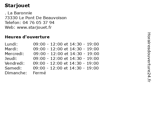 Lundi | 09:00-12:00 et 14:30-19:00 |
