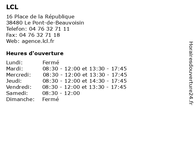 1 LCL (Distance: 17,82 km) 13 Rue du 11 Novembre 1918, 38110 La Tour du Pin agence, assurance, bancaire, banque, lcl 2 LCL (Distance: 19,31 km) 35 Avenue Jean Jaurès, 73000 Chambéry agence, assurance, bancaire, banque, lcl 3 LCL (Distance: 19,88 km) 26 Boulevard de la Colonne, 73000 Chambéry agence, assurance, bancaire, banque, lcl 6 |
