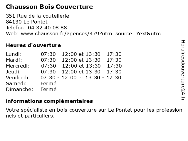 | Lundi | 07:30-12:00 et 13:30-17:30 |