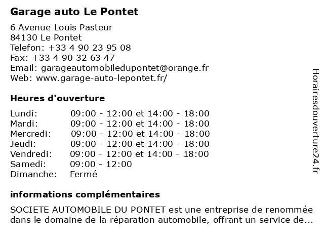 Lundi | 09:00-12:00 et 14:00-18:00 |
