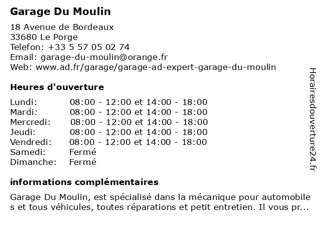 | Mardi | 08:00-12:00 et 14:00-18:00 |